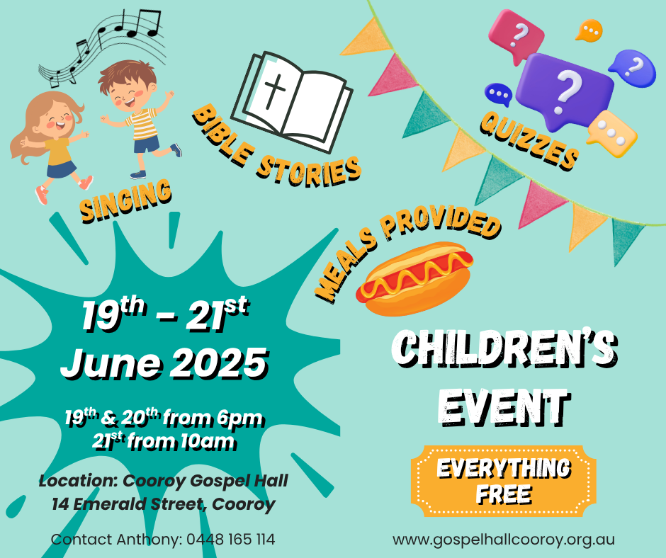 The event will be held at Cooroy Gospel Hall – Corner of Emerald & Wattle Streets, Cooroy QLD 4563.